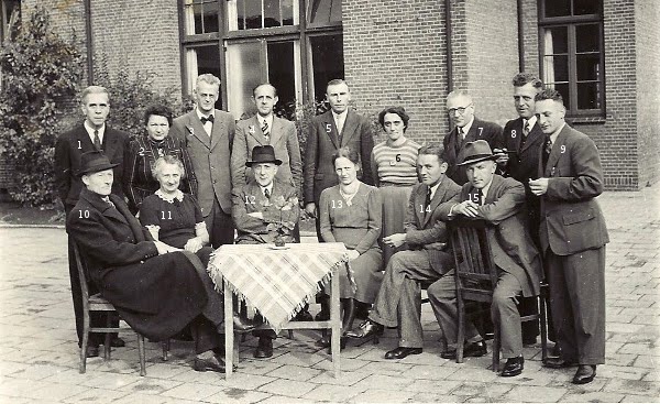 9.Touwen, 11.juffrouw Risseeuw, handwerkjuf, 12.Grashof, 13.juffrouw Aldewereld, 14.van Beek, 15.Mastenbroek